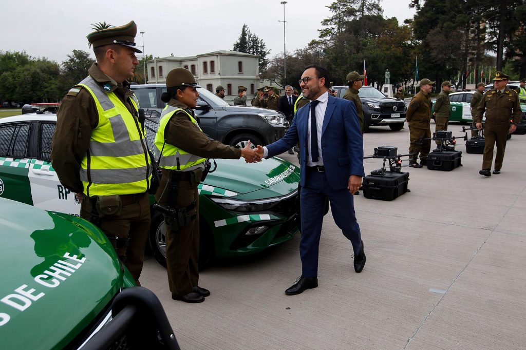 Los recursos entregados hoy a Carabineros de Chile se destinarán a la adquisición de mil 445 smartphone TIC (estándar militar para uso policial) por dos mil.408 millones de pesos; 37 vehículos radiopatrulla Furgón Z, por dos mil 220 millones de pesos, y 8 vehículos tipo SUV por 240 millones de pesos..