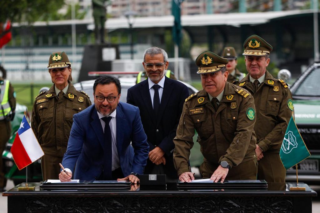 Santiago, 24 de octubre de 2025.- En el marco del tercer año de implementación del Plan Calles Sin Violencia, el Ministerio de Seguridad Pública y Carabineros de Chile firmaron hoy un convenio de transferencia de recursos por $4.868.332.370 (cuatro mil ochocientos sesenta y ocho millones, trescientos treinta y dos mil trescientos setenta pesos)) que permitirá fortalecer las capacidades operativas y de investigación para contribuir a la prevención, control y persecución del delito de acuerdo a los cuatro ejes del programa: persecución penal efectiva; aumento de patrullaje y presencia policial; fiscalización de armas y control de prófugos de la justicia, y prevención y espacio público.