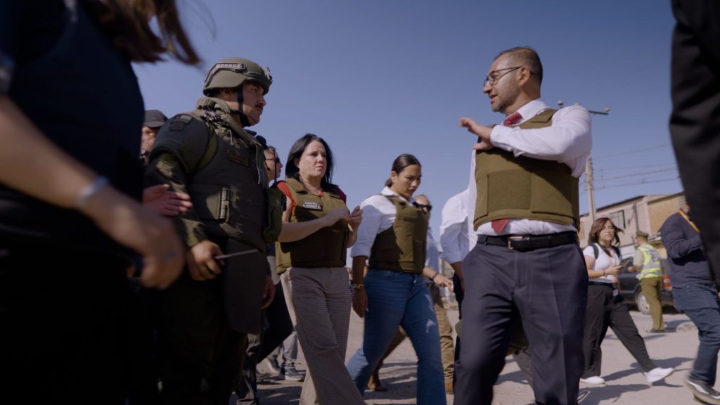 En un despliegue en terreno en la ciudad de Arica, la ministra de Seguridad, Trinidad Steinert, lideró una coordinación interministerial junto al titular de Vivienda, Iván Poduje, para avanzar en el desalojo de la toma del Cerro Chuño.