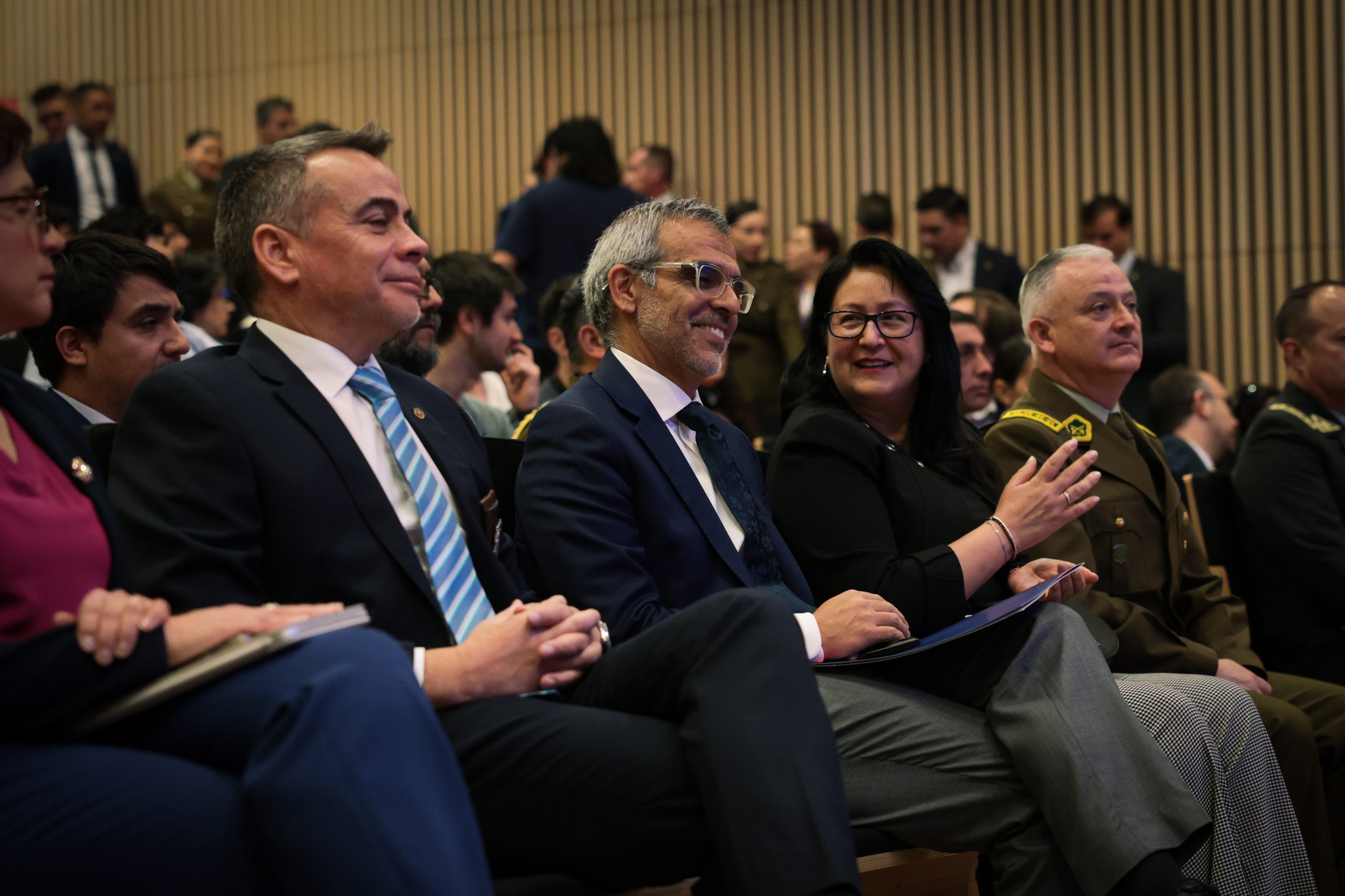 La jornada que se desarrolló en la Facultad de Ciencias Físicas y Matemáticas de la Universidad de Chile, contó con la presencia de la Contralora General de la República, Dorothy Pérez; el Decano de la Facultad de Ciencias Físicas y Matemáticas de la Universidad de Chile, Francisco Martínez; el Decano de la Facultad de Gobierno de la Universidad de Chile, Leonardo Letelier; el representante del Banco Interamericano de Desarrollo, Alejandro Pareja; el General Director de Carabineros de Chile, Marcelo Araya; el Director General (s) de la Policía de Investigaciones, Ricardo Gatica; el Director Nacional de Gendarmería, Rubén Pérez; el Subsecretario de Seguridad Pública, Rafael Collado; la Subsecretaria de Prevención del Delito, Carolina Leitao; el SEREMI de Seguridad Pública de la Región Metropolitana, Alejandro Jiménez; además de investigadores, académicos, estudiantes de pregrado y posgrado, y equipos técnicos que han contribuido al desarrollo de estos proyectos.